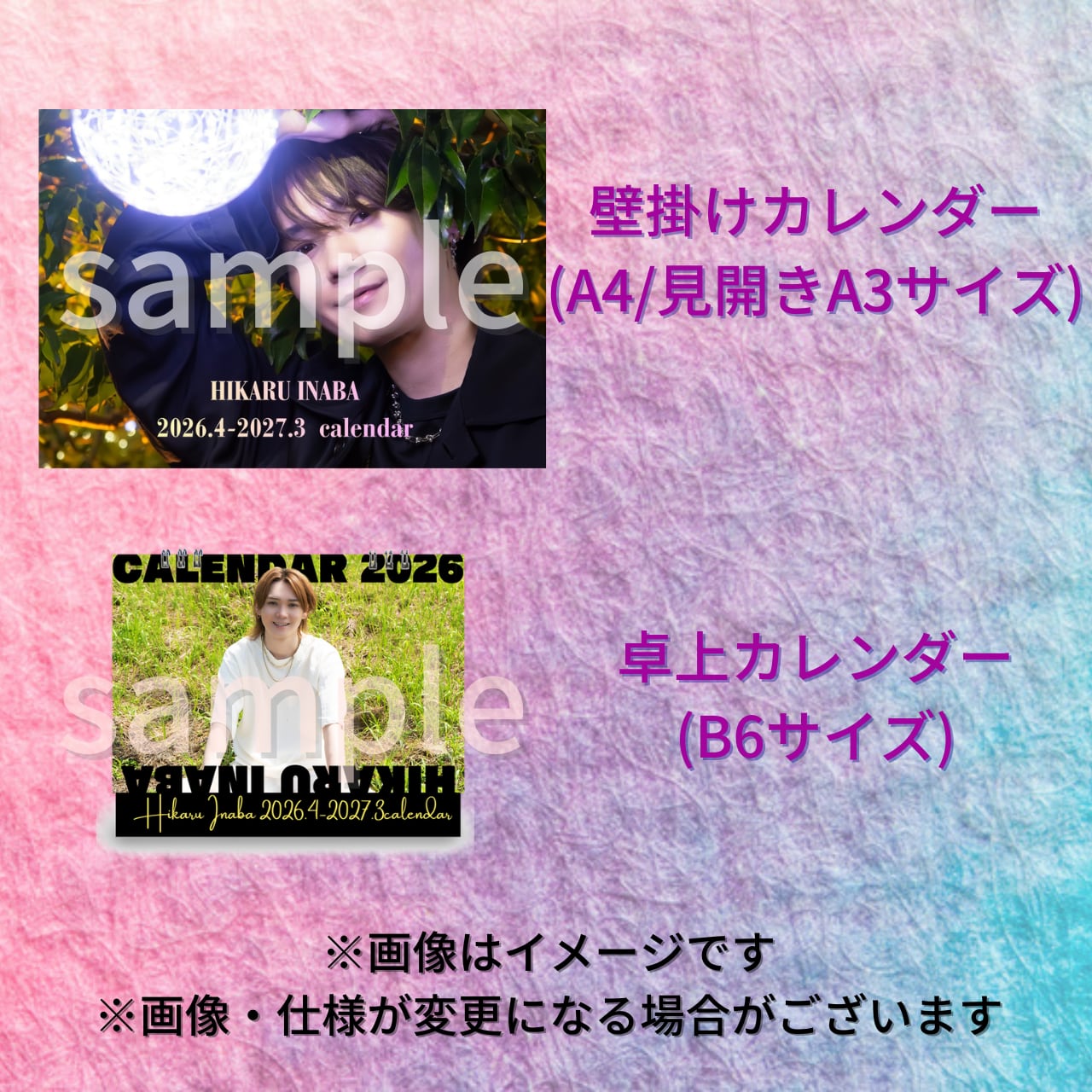 ・やむを得ず当日ご来場が出来ないお客様は2026年3月22日(日)までに[email protected] (稲葉光事務局)までご希望のお宛名をご連絡頂けましたら、サイン入り、お宛名入りのカレンダーを着払いにてお送り致します。ご連絡がない場合はお宛名なしのサイン入りカレンダーを着払いにてお送り致します。予めご了承ください。