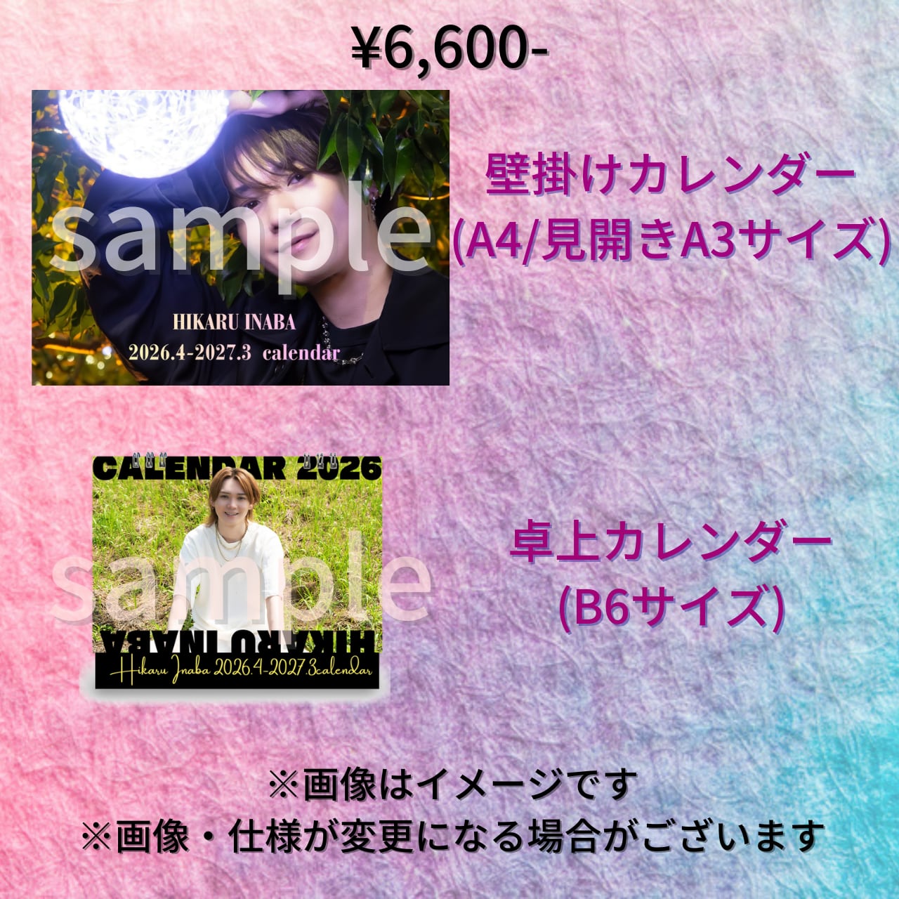 2026稲葉光カレンダーセット【壁掛け・卓上1セット】